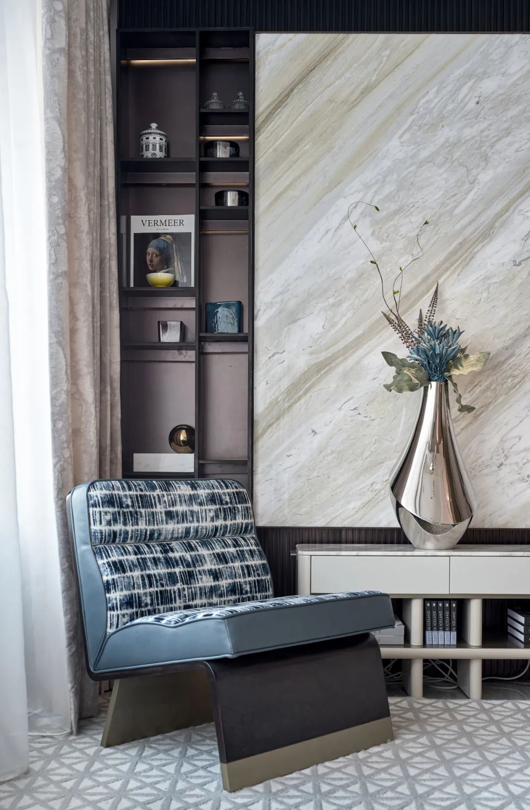 長(zhǎng)夜?jié)u晚,柔和燈光下閱讀一本書,享受獨(dú)處的時(shí)光。飽含詩(shī)意,囊括情感上的共鳴與空間所具備的舒適度,并相得益彰,營(yíng)造出靜謐的藝術(shù)氛圍,從功能上提供舒適的生活環(huán)境,現(xiàn)代美學(xué)于寧?kù)o中優(yōu)雅盛放。