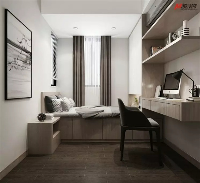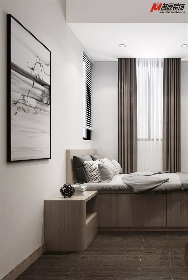 榻榻米打造的空間好看兼?zhèn)鋵嵱眯?。墻上的藝術作品,增添了藝術的氣息,為簡潔的空間注入了藝術和文化的力量。無論是臨時居家辦公,備用客房,亦或是書房,這方小天地里游刃有余。
