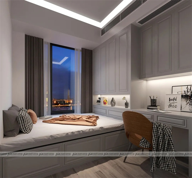 長輩房的設(shè)計(jì)風(fēng)格偏向現(xiàn)代簡約,整體呈現(xiàn)自在平和的舒適氛圍,以白色作為主要色調(diào),明亮干凈,給老人創(chuàng)造一個(gè)樂觀積極的居住環(huán)境。