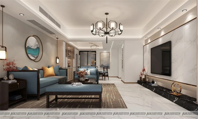 潮州珠江帝景四居新中式風(fēng)格裝修效果圖
