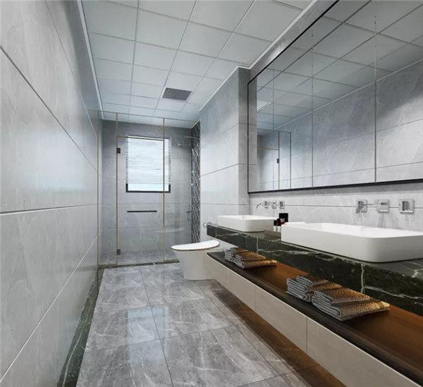 衛(wèi)生間干濕分離,有效避免水汽對柜體的傷害;洗手臺下設計柜體增加收納功能。