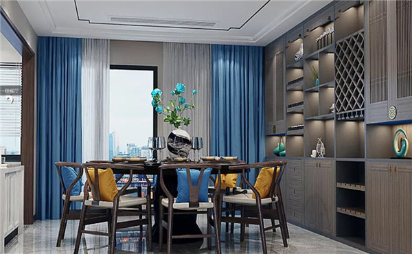 。除了保留中式的韻味外,還加了大理石、燈帶等材料,使空間包含現代生活氣息。新中式風格是一種既繼承了中國古典園林的基本元素及造園手法,又融合了現代簡約的幾何圖案及線條的設計風格