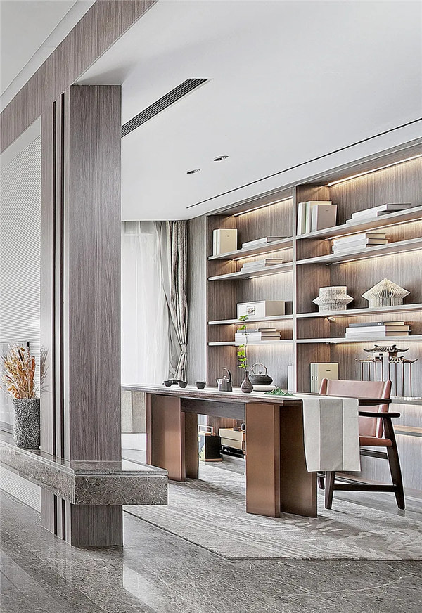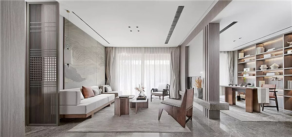 現(xiàn)代元素與古典元素相結(jié)合的方式,立足于傳統(tǒng),又施之以創(chuàng)新,呈現(xiàn)出了極為濃郁的東方情調(diào)。傳統(tǒng)與現(xiàn)代交融,古樸與時(shí)尚融匯,新中式是人們在喧囂中追求閑云野鶴的捷徑,在自己的一方天地中,感悟時(shí)間的悄然流逝,平和淡然。