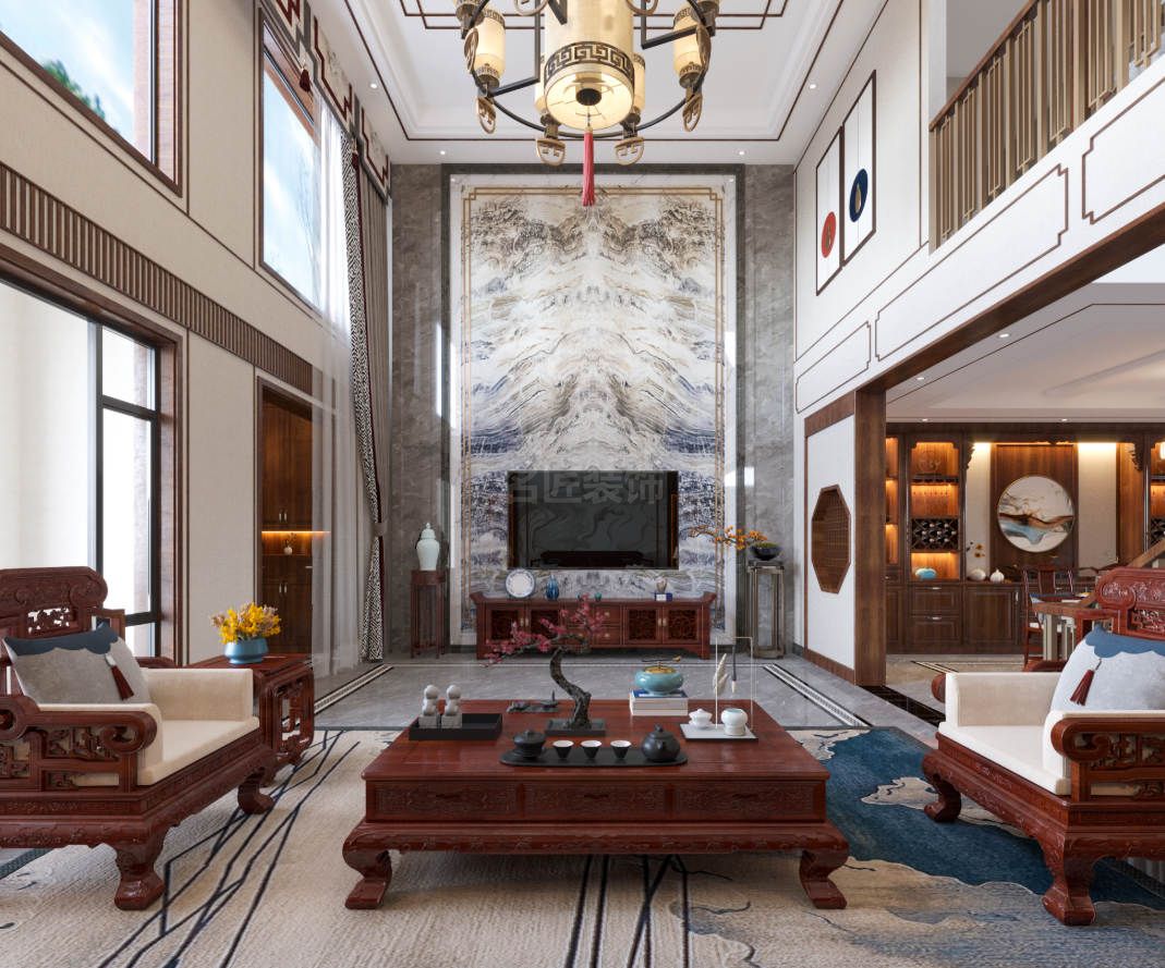 遂寧山嶼湖別墅新中式風格裝修效果圖