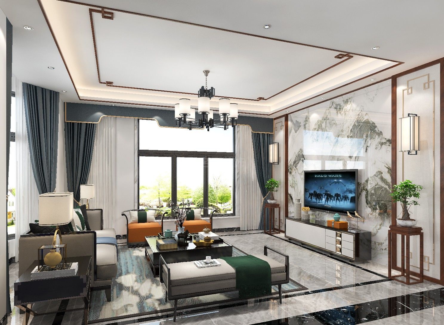 韶關(guān)云林水岸別墅別墅新中式風(fēng)格裝修效果圖