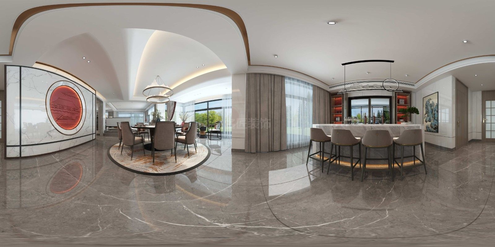 ??陂L怡花園別墅新中式風(fēng)格裝修效果圖