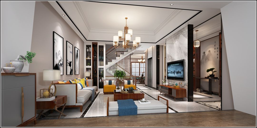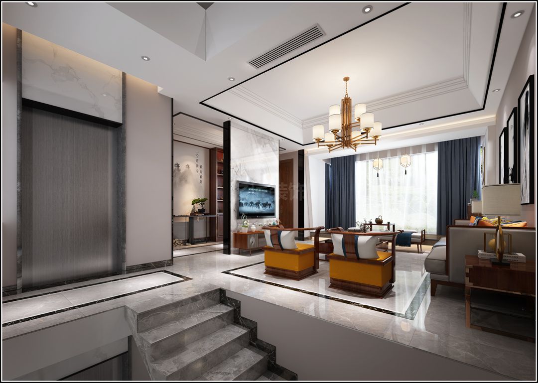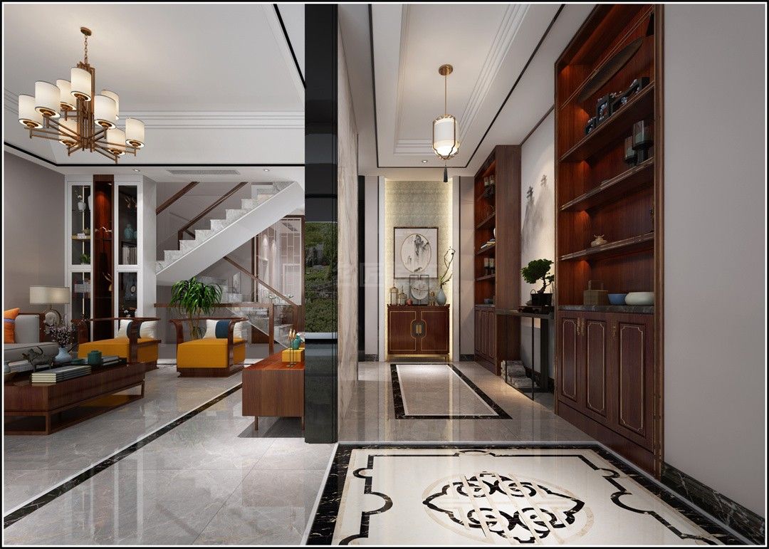 中山保利林語(yǔ)麓山別墅新中式風(fēng)格裝修效果圖