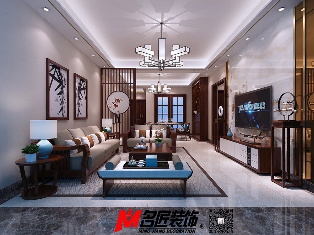 河源東江灣四居新中式風(fēng)格裝修效果圖