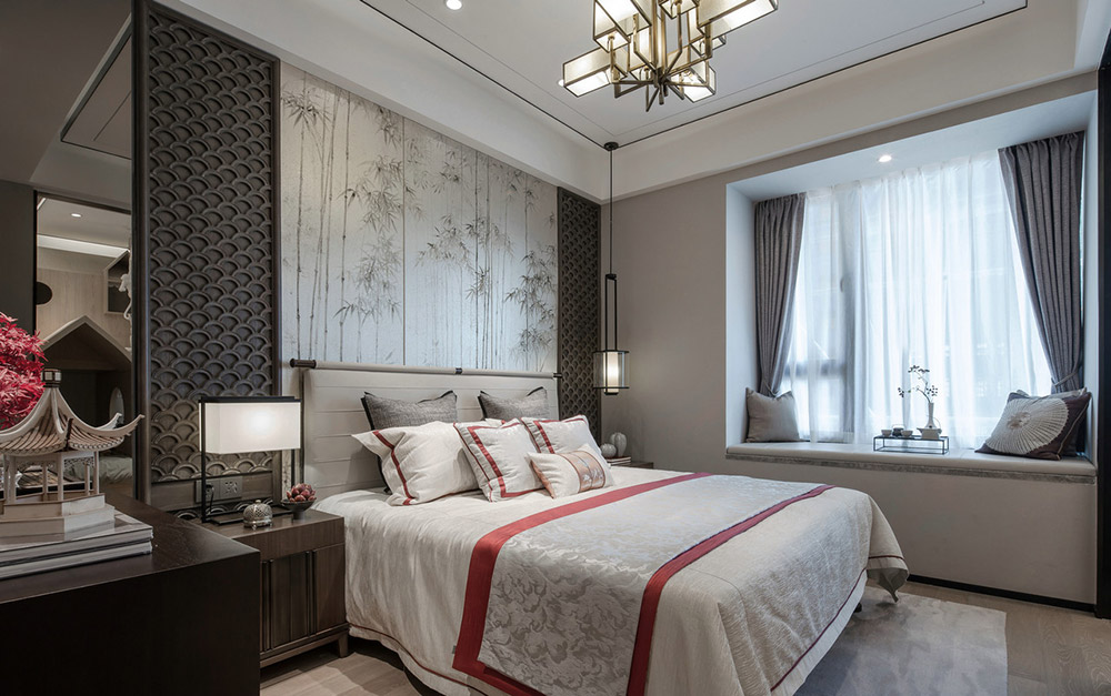 河源十里東岸三居新中式風(fēng)格裝修效果圖