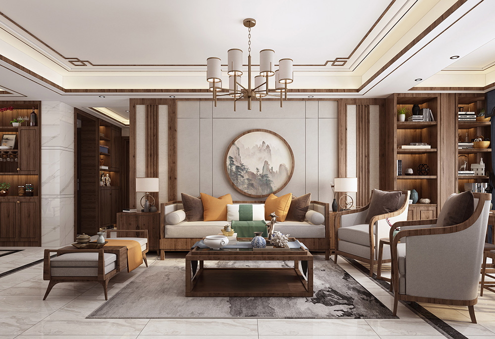 中山101-200平米新中式風格國韻飄香室內設計效果圖