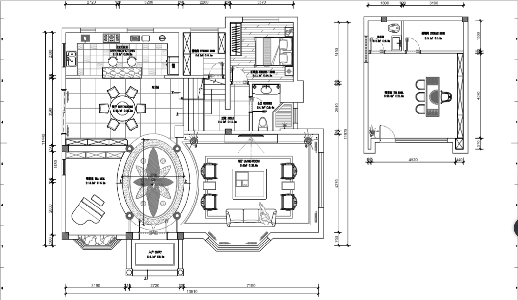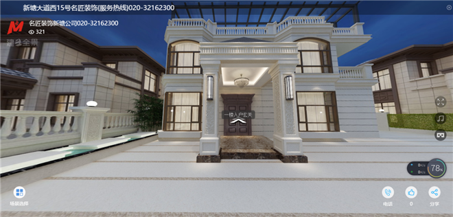 本案室內(nèi)采用的色調(diào)主要以黑、白、灰三色為主,體現(xiàn)現(xiàn)代、時尚的輕奢感;外觀用的黃金麻和真石漆的結(jié)合,既可以體現(xiàn)大氣又不失富貴,和周圍的建筑也可以更好的融合
