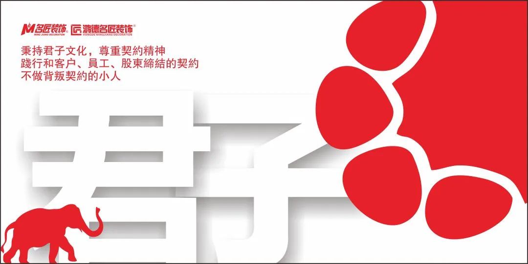 2005年,名匠裝飾創(chuàng)始人,集團(tuán)董事長溫浙濤先生為名匠裝飾導(dǎo)入君子文化,他說:“做人做事,要有君子心態(tài)”。30年來君子文化深入名匠人的骨髓,名匠裝飾以打造業(yè)界第一個君子團(tuán)隊(duì)為榮。