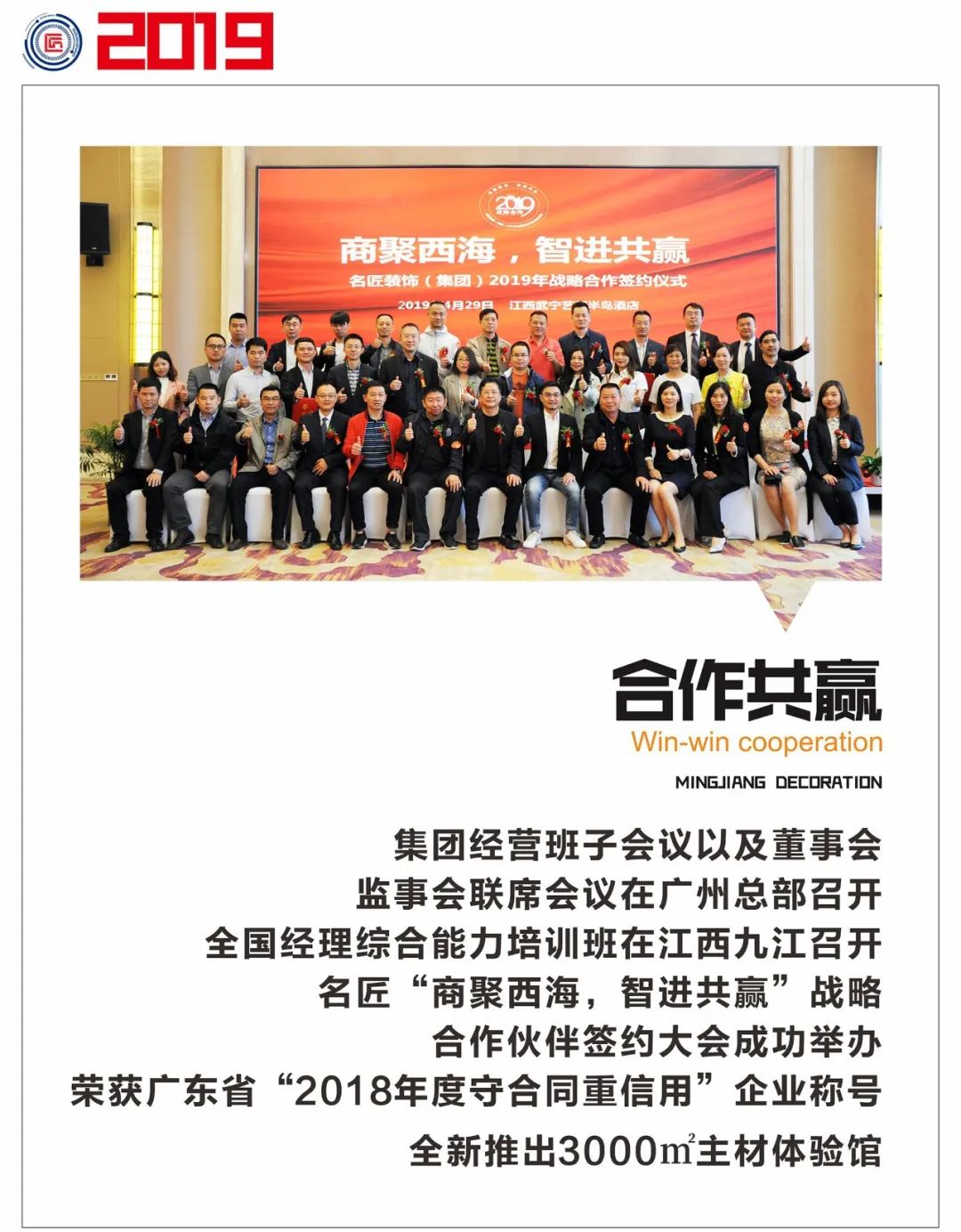2007年,溫浙濤先生將幸福文化注入名匠企業(yè)文化中,將員工的幸福指數(shù)拔高到企業(yè)文化高度,將客戶的幸福指數(shù)作為服務(wù)客戶的文化信條。他說:“只要名匠開著門做生意,幸福這個概念,就要堅(jiān)持下去。